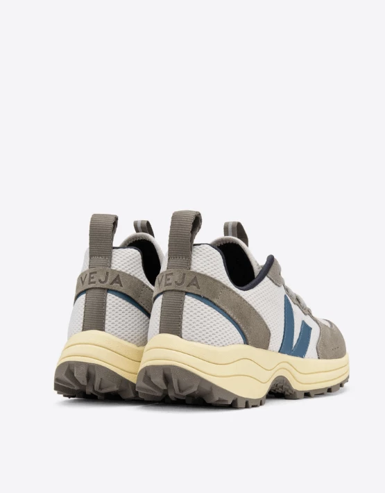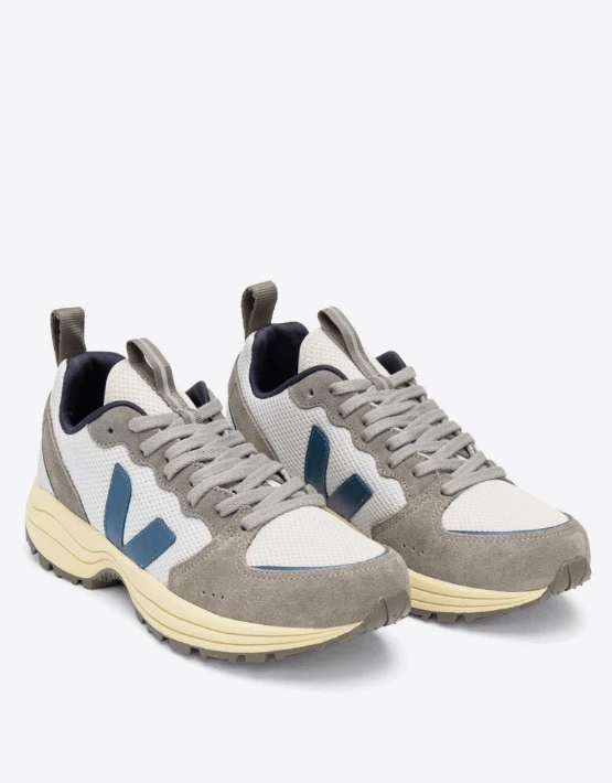 – Venturi low rise trainers – Lace up – Upper: Alveomesh (100% recycled plastic bottles) – Panels: Leather, water-repellent suede, V-knit & TPU details – Logo V: Rubber – Lining: Jersey (100% recycled polyester) – Insole: Wild rubber (12%), recycled plastic bottles (12%), jute (12%) and other synthetic materials – Midsole: Sugar cane (40%) – Sole: Wild rubber from the Amazonian forest – Cushion latex in L-Foam (30% natural latex from Brazil & 70% synthetic latex) – Made in Brazil, in the region of Porto Alegre. – Multico/Grey/Tarmac – VEJA RD Size: 4